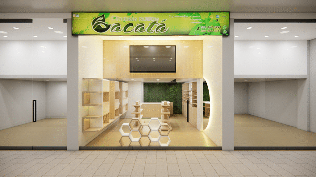 El diseño del local Bacatá Unicentro fue concebido para crear una experiencia sensorial envolvente, donde cada detalle comunica estilo y sofisticación. El muro verde con plantas artificiales aporta frescura y vitalidad, mientras que los paneles en WPC y la iluminación cálida resaltan las líneas modernas del mobiliario perimetral.
